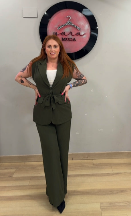 Este conjunto en verde oliva es sinónimo de elegancia atemporal y estilo moderno.