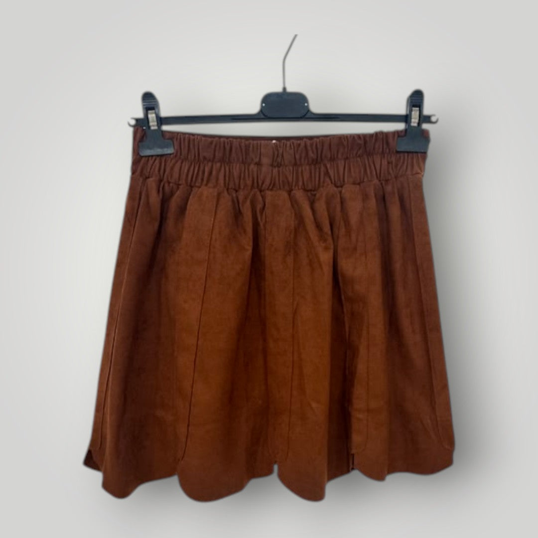 Falda corta marrón efecto ante con bajo ondulado