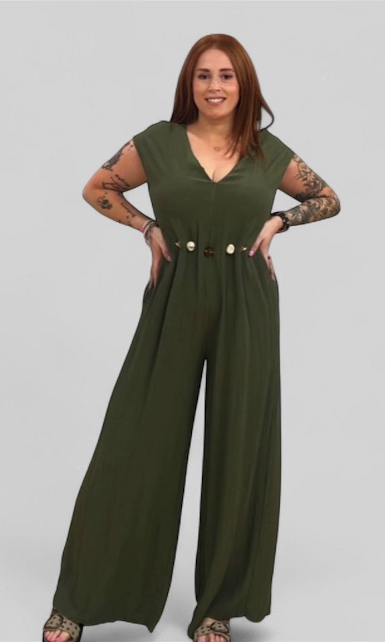 Comodidad y estilo se encuentran en este mono fluido de corte palazzo, ideal para cualquier ocasión. Su tejido ligero y con movimiento estiliza la figura, mientras que el escote en pico y la cintura marcada con cinturón aportan un toque chic que no pasa desapercibido.
